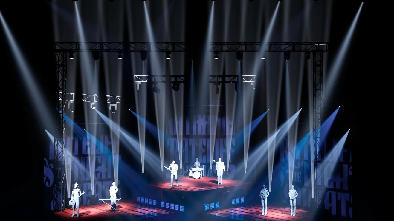 Digital Rendering Concept for Nathaniel Rateliff and The Night Sweats generated on Capture Sweden software linked to EOS offline editor. Set design generated in Vectorworks 2019.